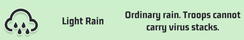 This weather can be dangerous as it can spiral your virus debuffs out of control. When engaging against monsters in the world, rallies, stronghold attacks, etc. you will gain extra virus stacks and the debuff can ramp up quickly then.