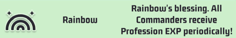 The rainbow weather effect provides a passive experience gain for professions while you are offline. This weather effect is ideal for gathering and idle experience gain. The experience does not tick constantly, but you get a set amount awarded at regular intervals.