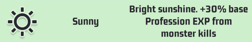 Sunny weather gives a 30% experience buff from killing monsters.