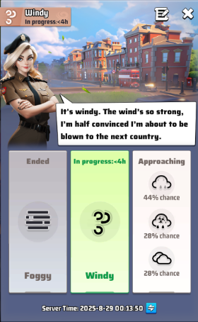 Okay, I'm not going to be posting about the weather where you live because I'm no psychic. But what I will talk about today, is an exciting new gameplay mechanic coming to Last War Season 1, the weather!
