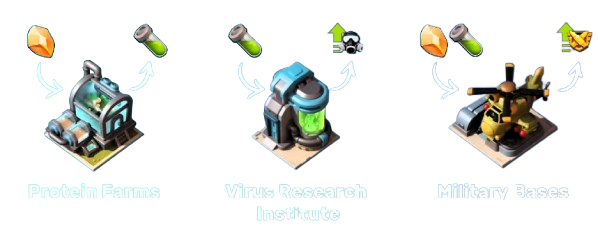 Protein farms will start generating resource "Immune proteins" that you need to level up your Virus Research Institute. To do so, they require "Mutant Crystals".